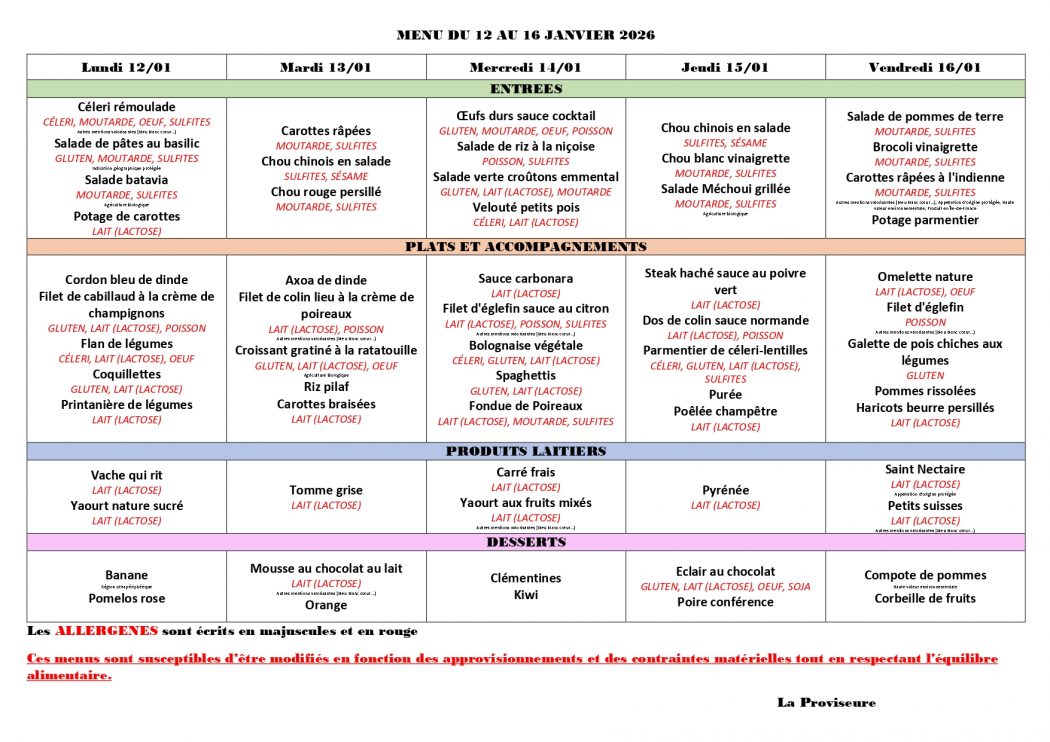 Restauration scolaire et menu